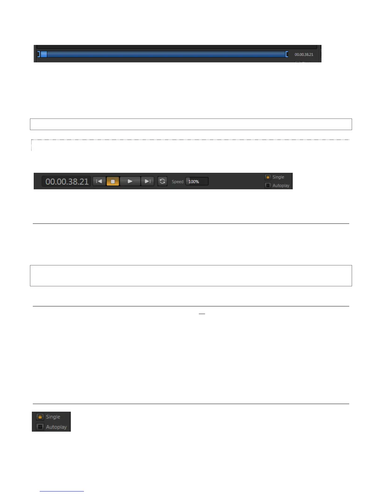 played. In Single mode, playback stops when the Out Point of the current playlist item is reached