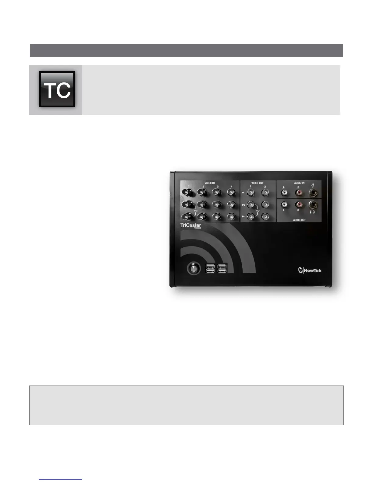 Thank you for purchasing this NewTek™ product! Your TriCaster™ 40 belongs to a large