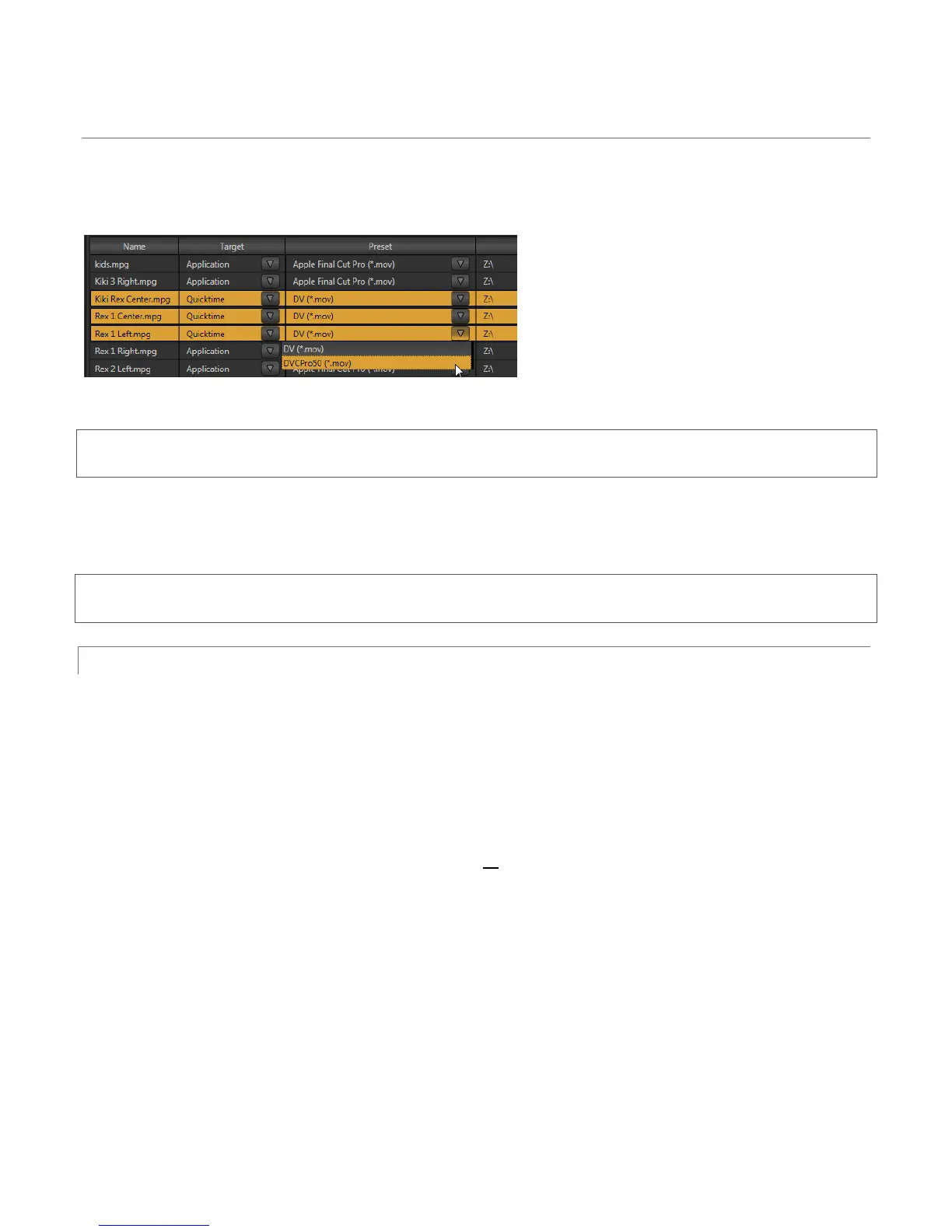 device or application targets to choose from. Then select a specific encoding Preset in the next column. Export presets vary
