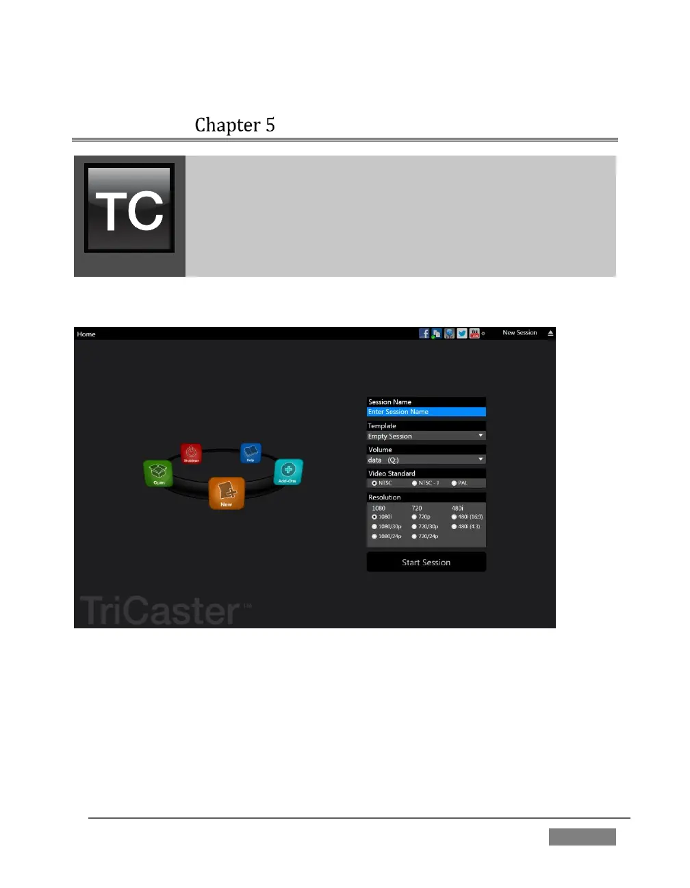 The TriCaster™ Startup Screen is the gateway to a suite of