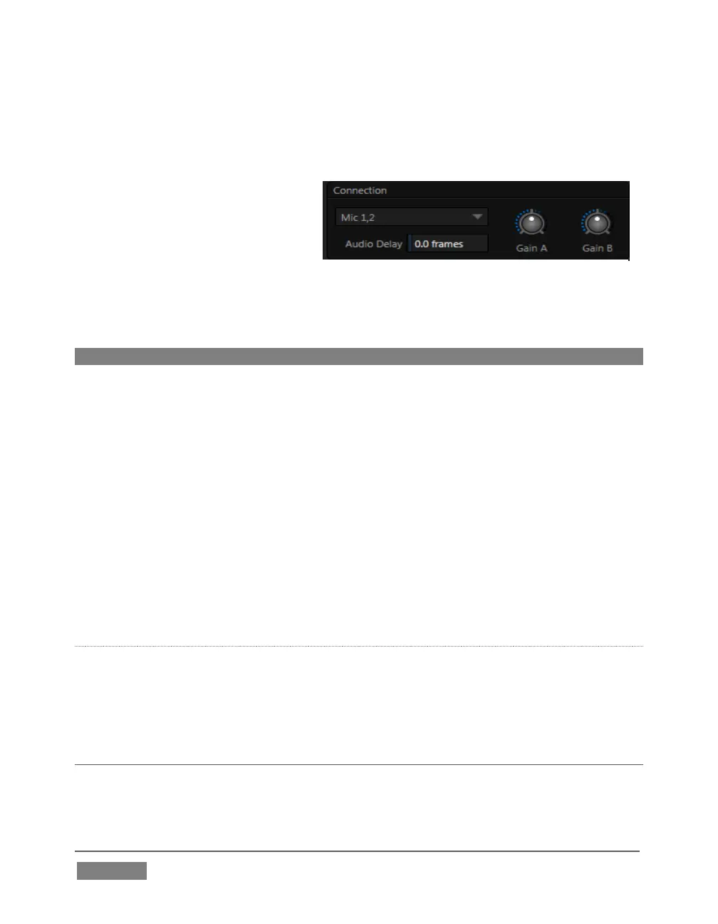For Mic selections only, a Gain knob is sown at right for each input channel. This