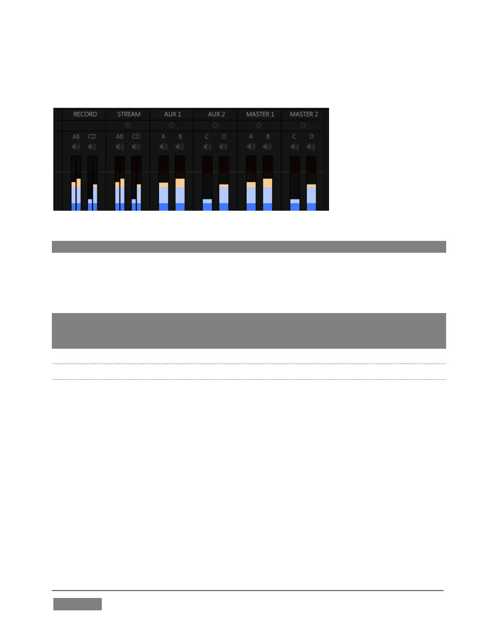 outputs as the Aux and Master mixes, for recording, and for Internet streaming.