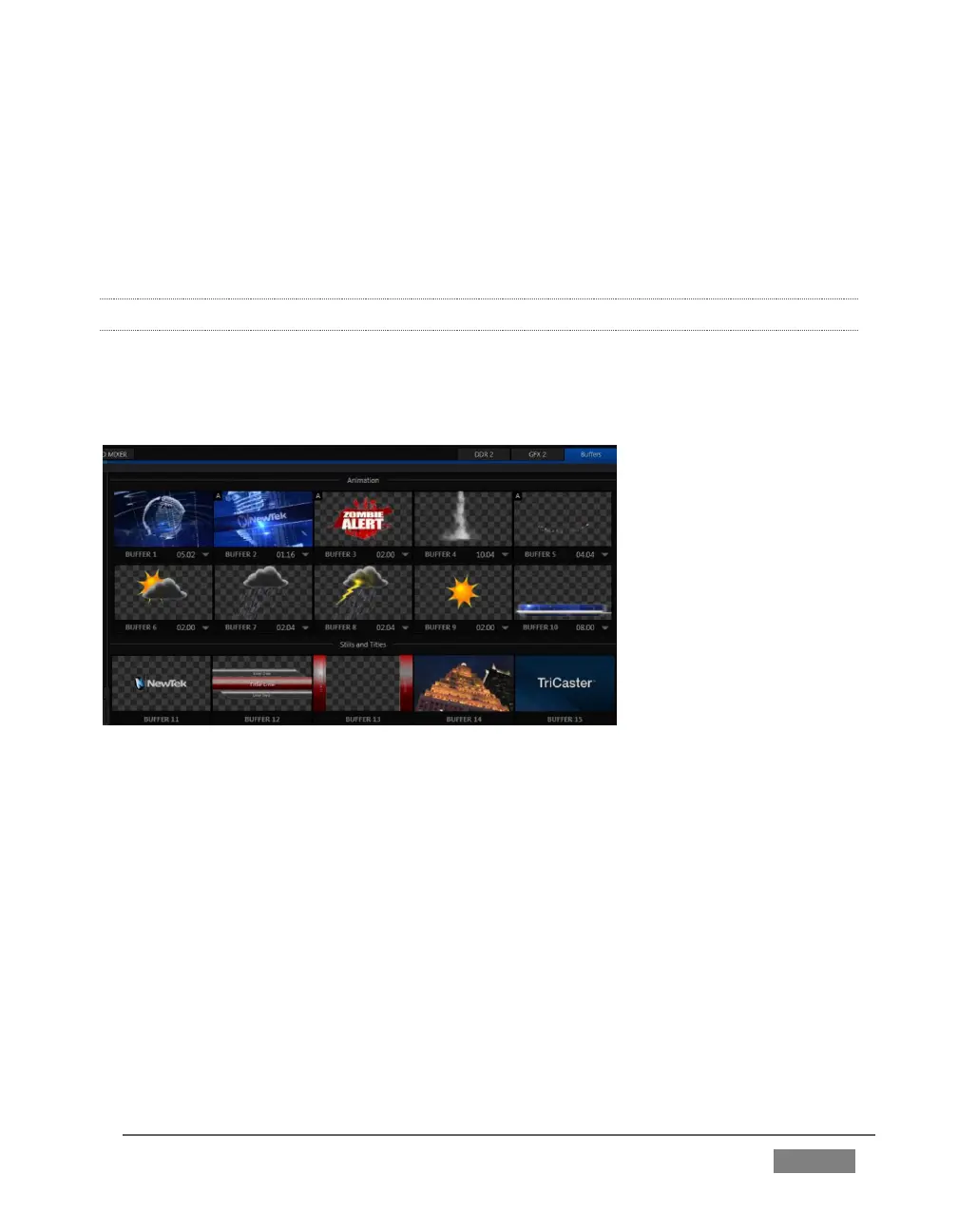 The Buffers module provides quick review and management of TriCaster’s internal