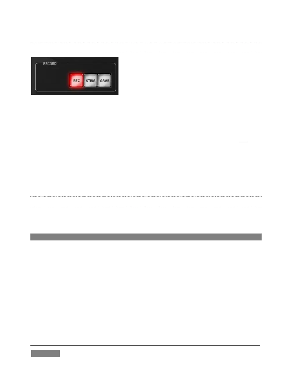 Three buttons labeled REC, STRM, and GRAB are located in the RECORD group.