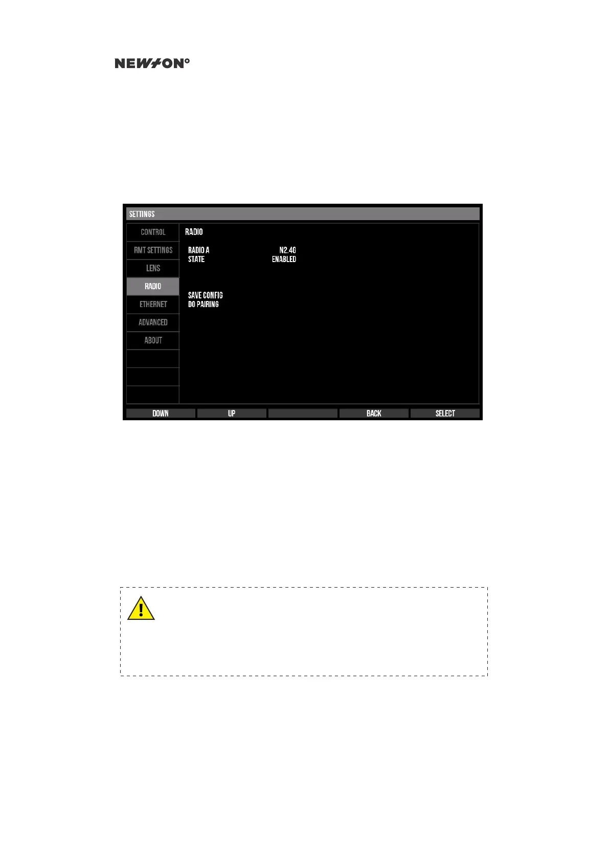 SELECT. The message “RADIO PAIRING IN PROGRESS” will be displayed