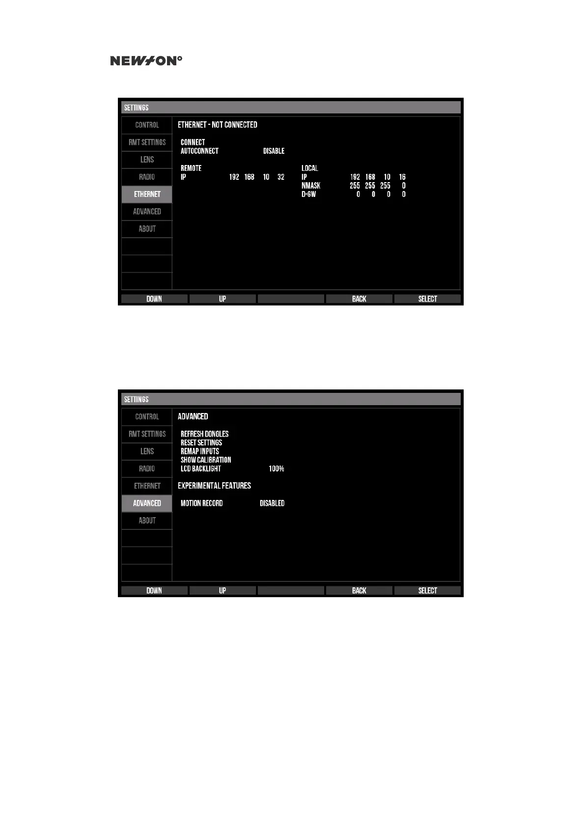Figure 5.5: Newton C1 Settings - Ethernet tab