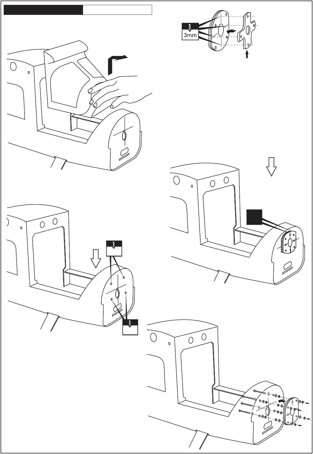 Remove the aluminum motor mounting plate and drill a 3mm