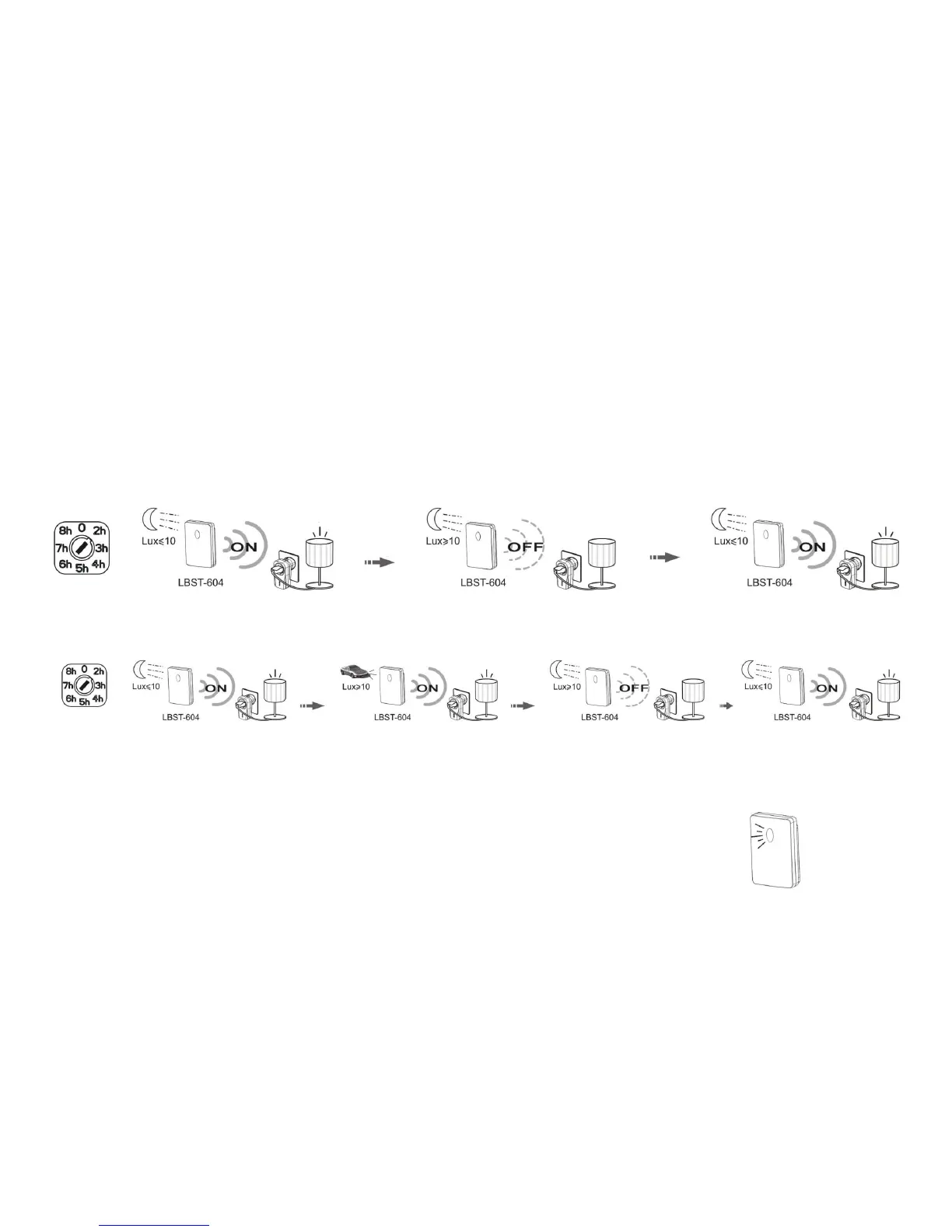 släcker lampan. Efter två timmar sänder LBST-604 helt enkelt en avstängningssignal till mottagaren, som släcker lampan.