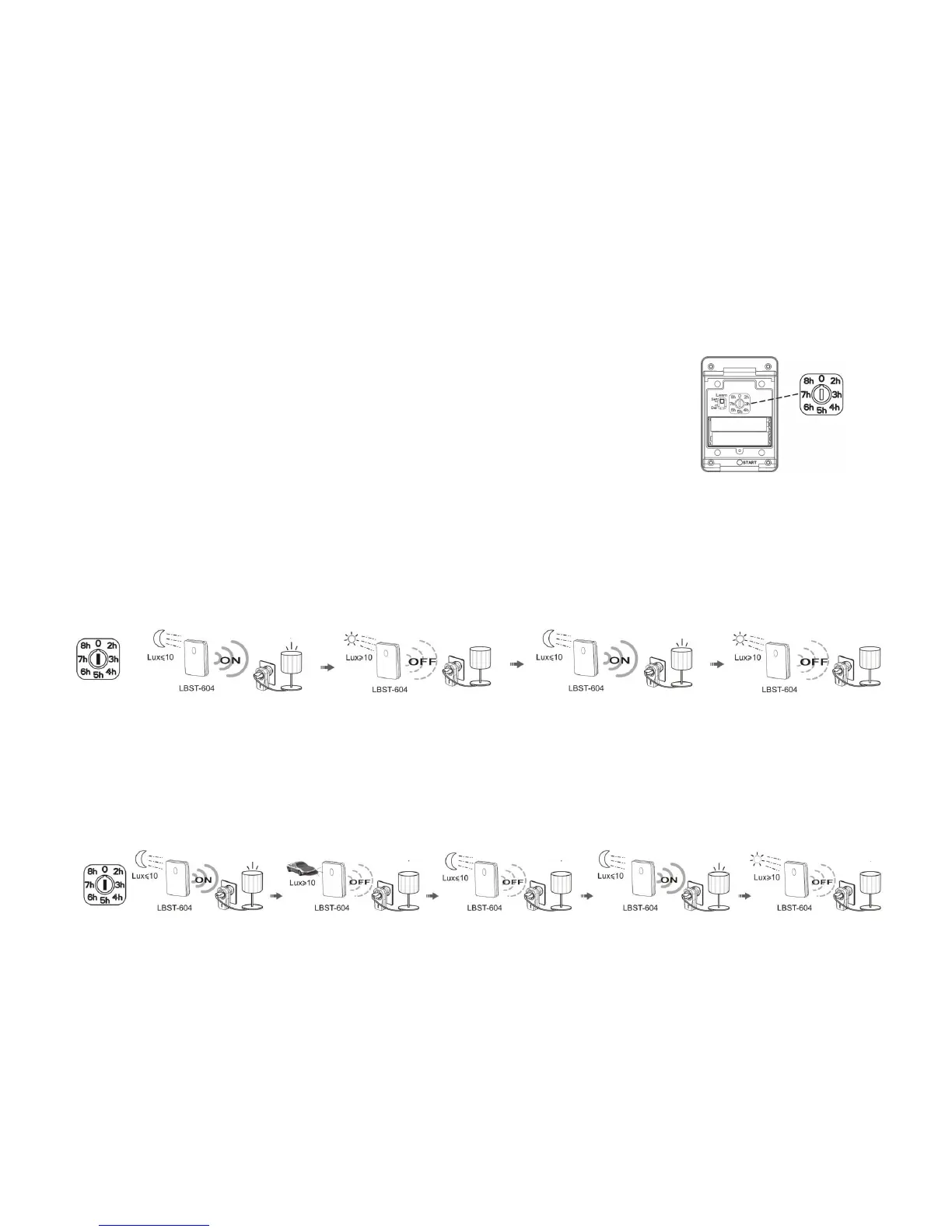 0: ingen tidsinnstilt avslåing. LBST-604 slår PÅ en mottakertilkoblet lampe når lysstyrken i