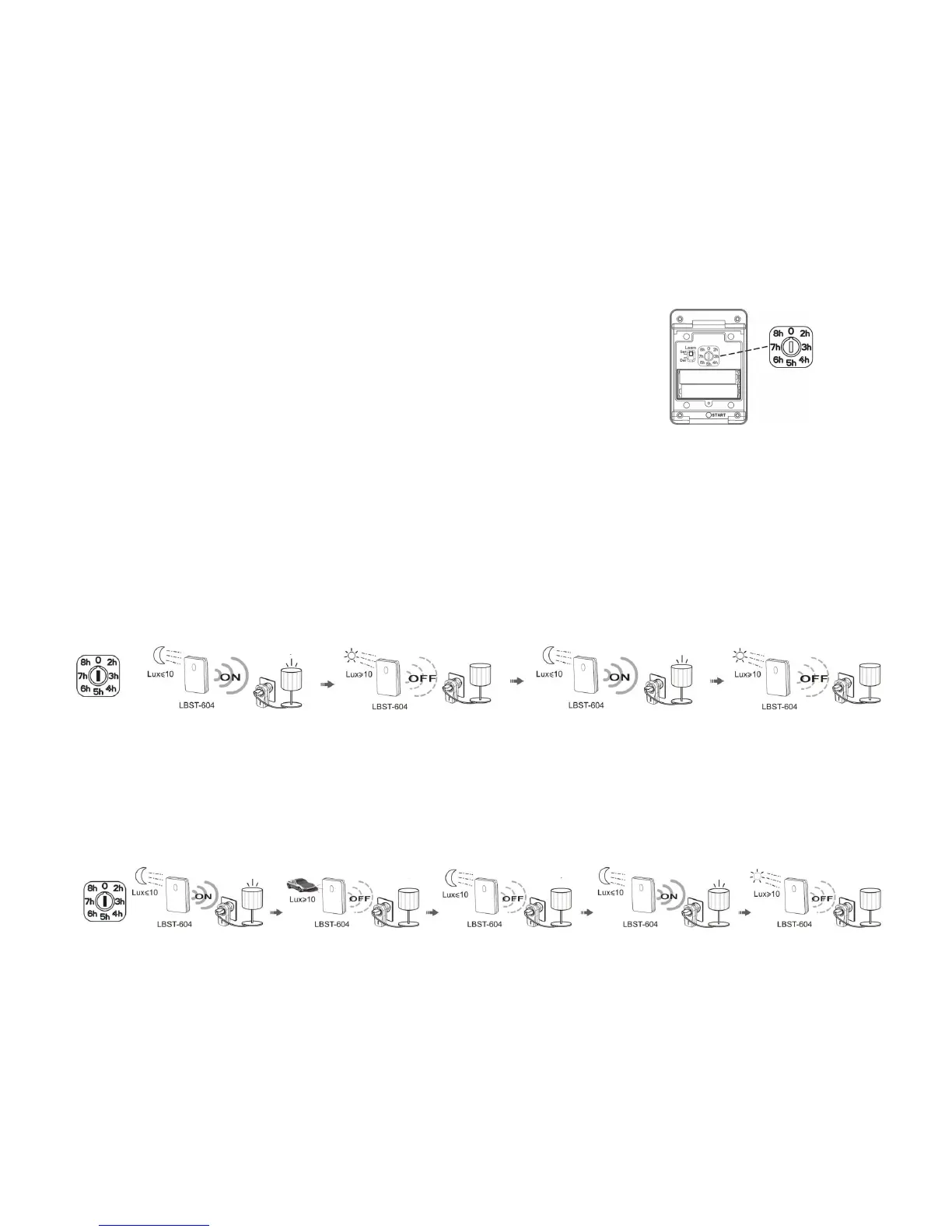 Kun ympäristön valoisuustaso nousee asetetun tason yläpuolelle, LBST-604 lähettää vastaanottimeen OFF-signaalin, joka