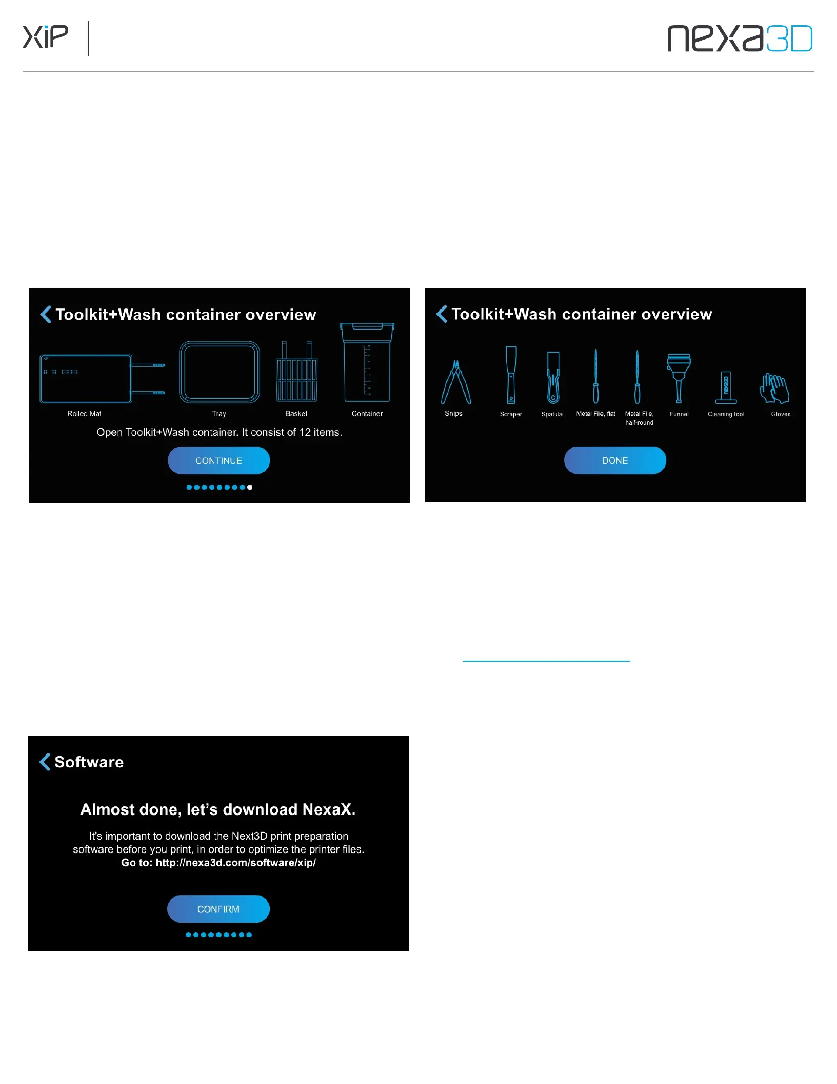 Use your computer to navigate to the link displayed on the screen (nexa3d.com/software/xip/) to download the