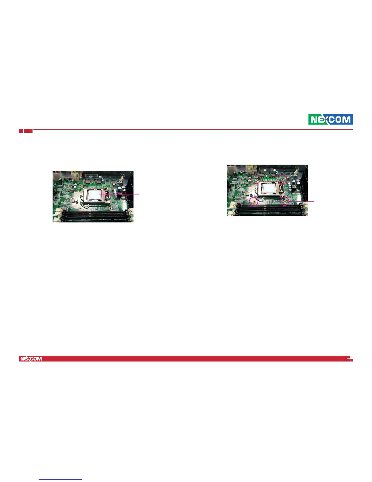 9. Apply thermal compound on top of the CPU. Do not spread the com-