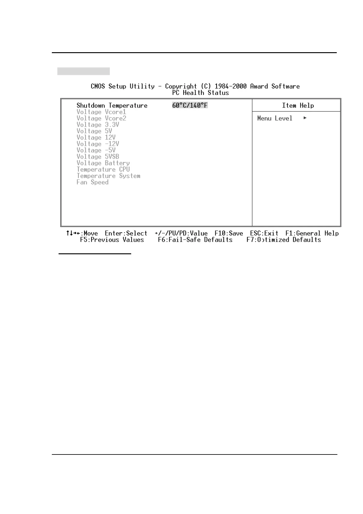 This item allows you to set up the CPU shutdown Temperature. This item only effective under Windows