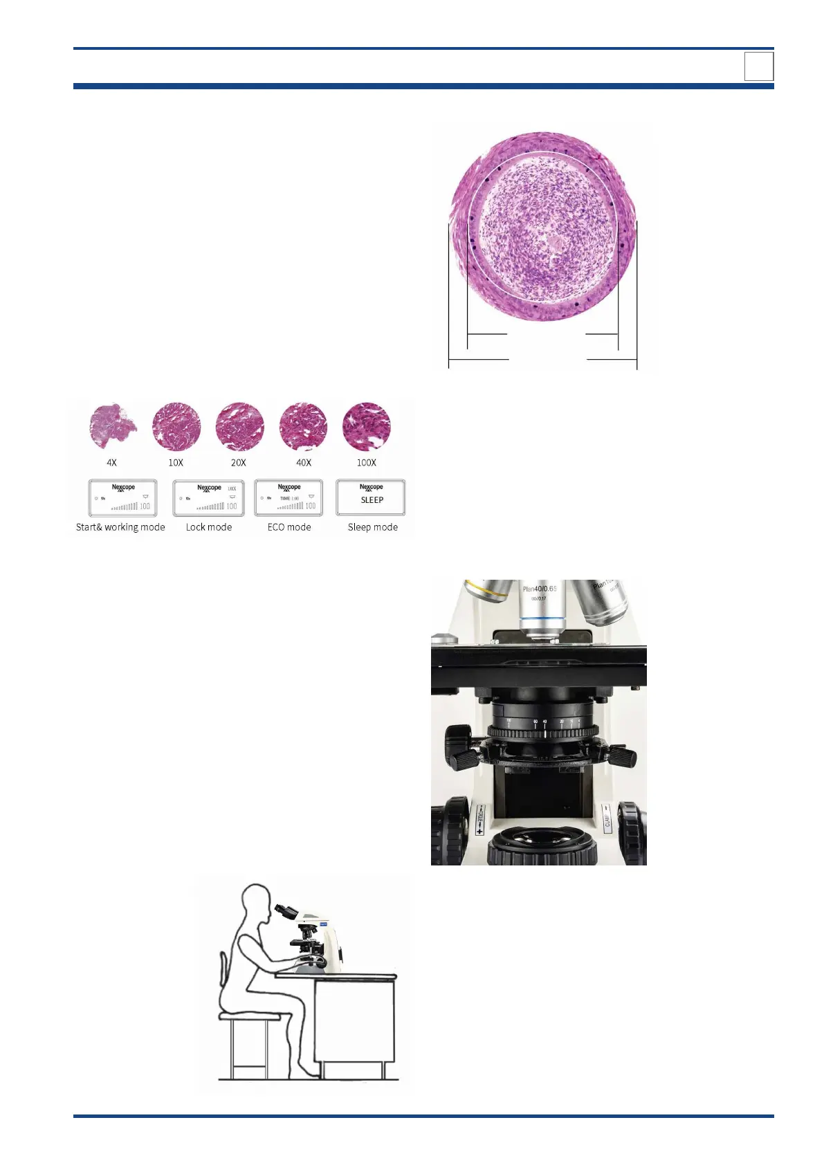 The LCD shows the usage status of the microscope, includ-