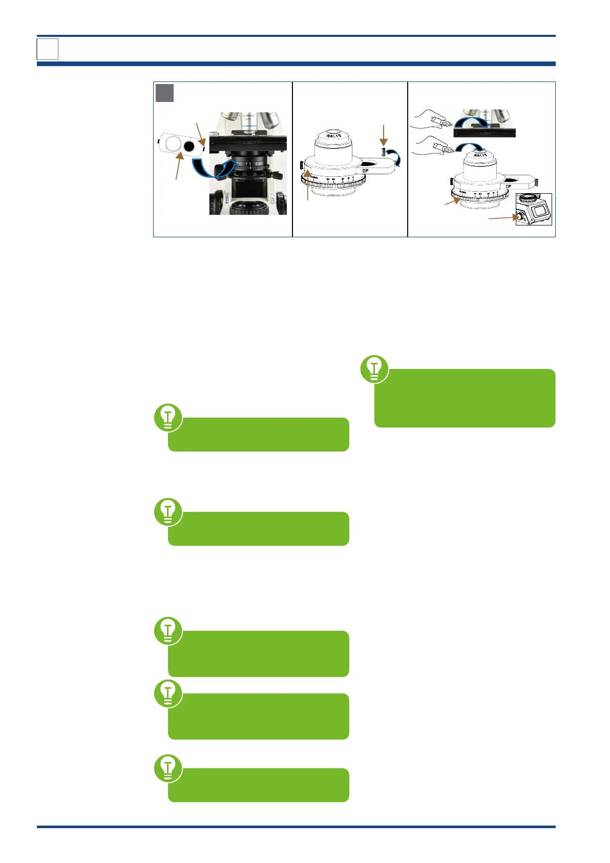 Illustration 026 C-D: Settings for dark field observation: Inserting the BF/DF slider.