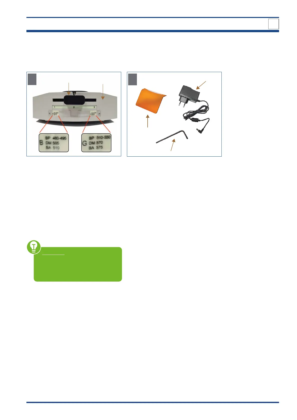 Illustration 034: A-B: Components of the LED fluorescent attachment.