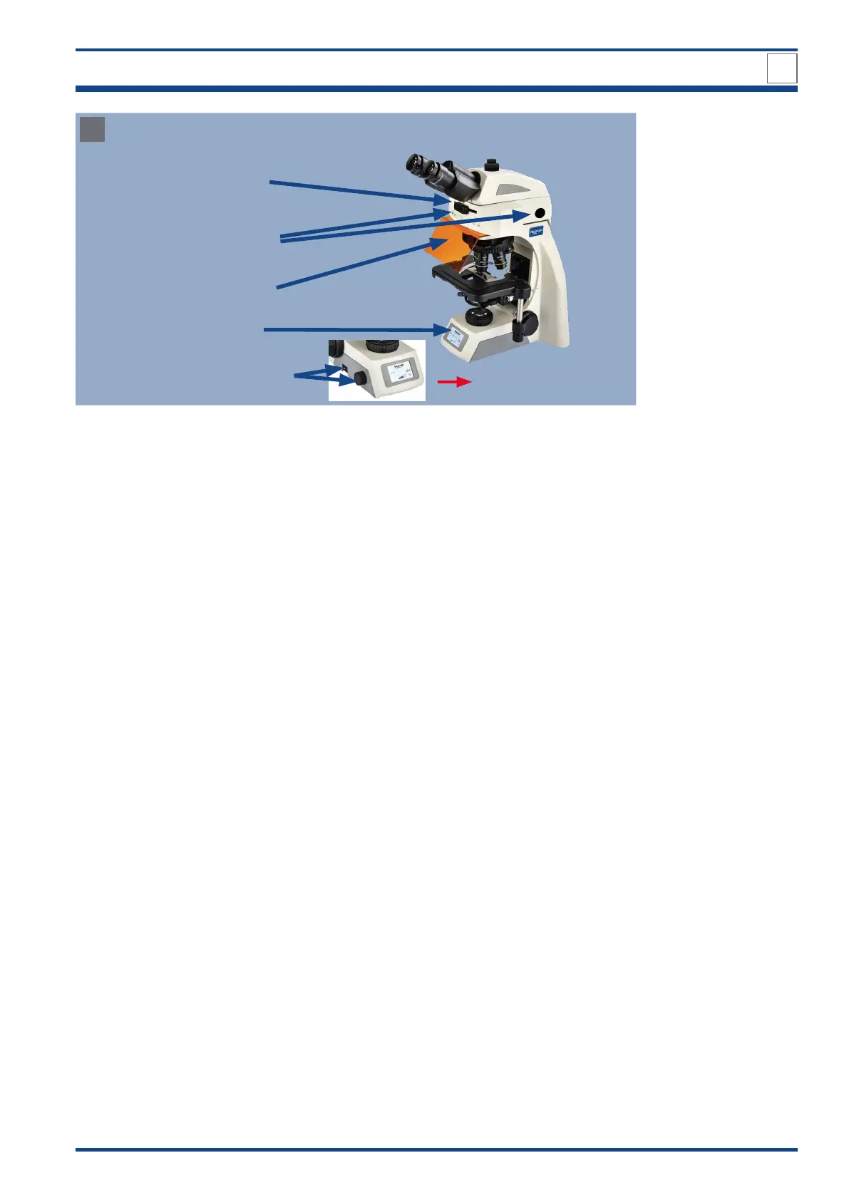 Illustration 038 B: Settings for fluorescent observation: Final check and observation.
