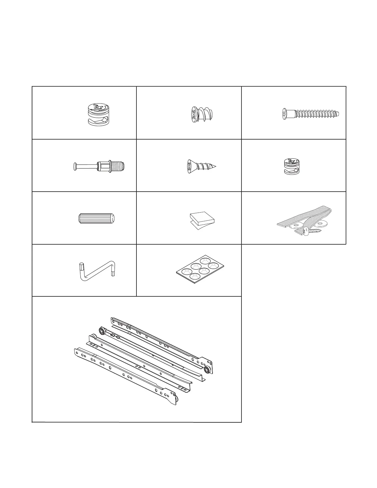 NEXERa 221503 - Hardware and Parts Identification; Hardware Component List; Drawer Slide Identification