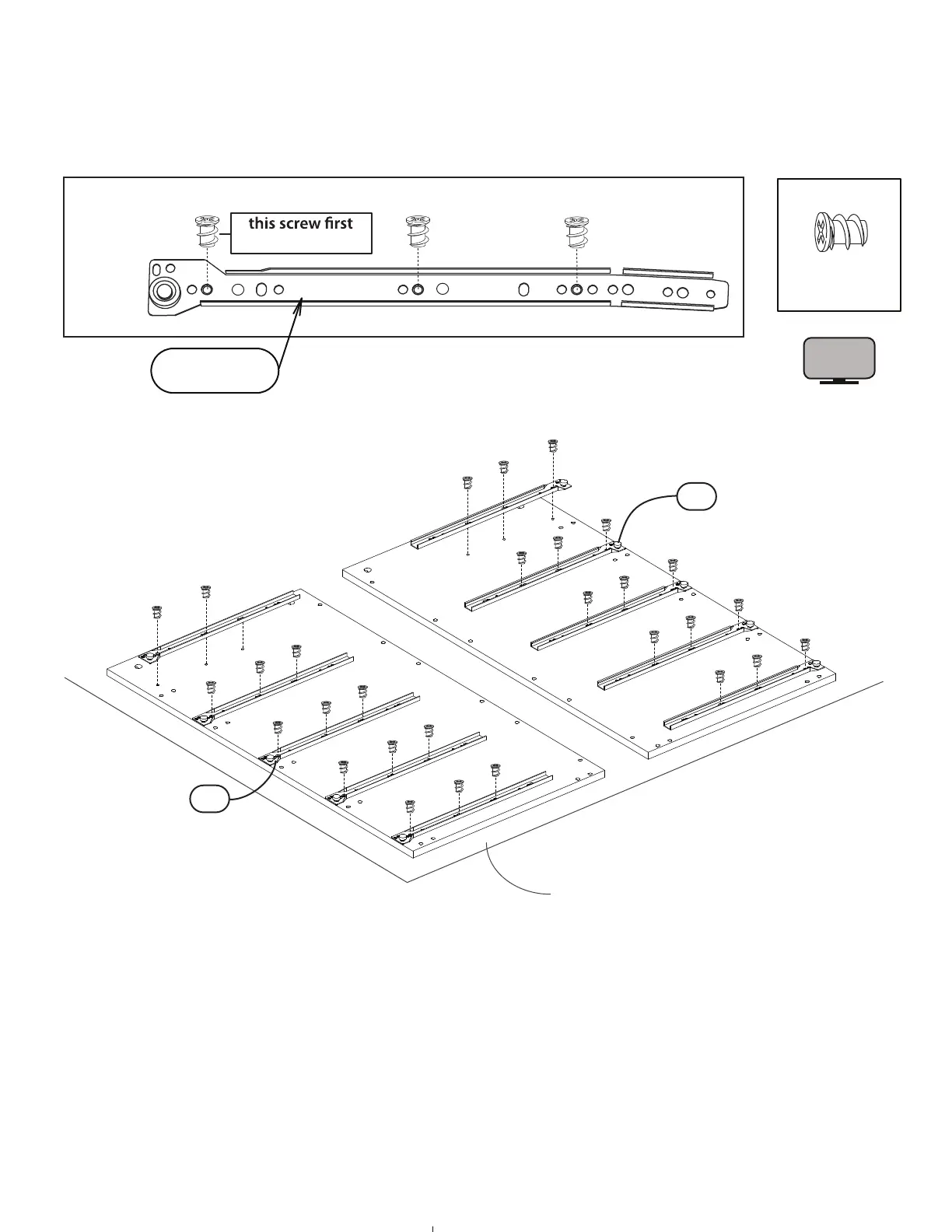 Using 30 screws # 0110, fasten the 10 drawer slides # 0910 (CL and CR) to the panels A1 and B1