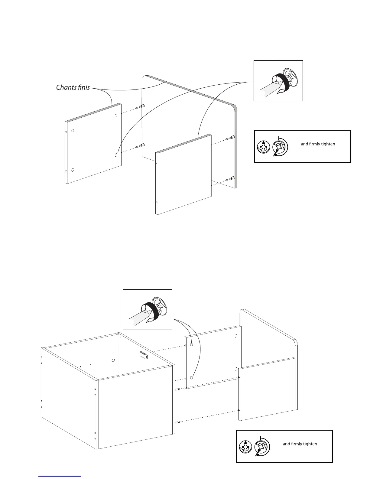 Assemblez les 2 panneaux G1 avec le panneau C2. Serrez ensuite les 4 excentriques # 0203 se