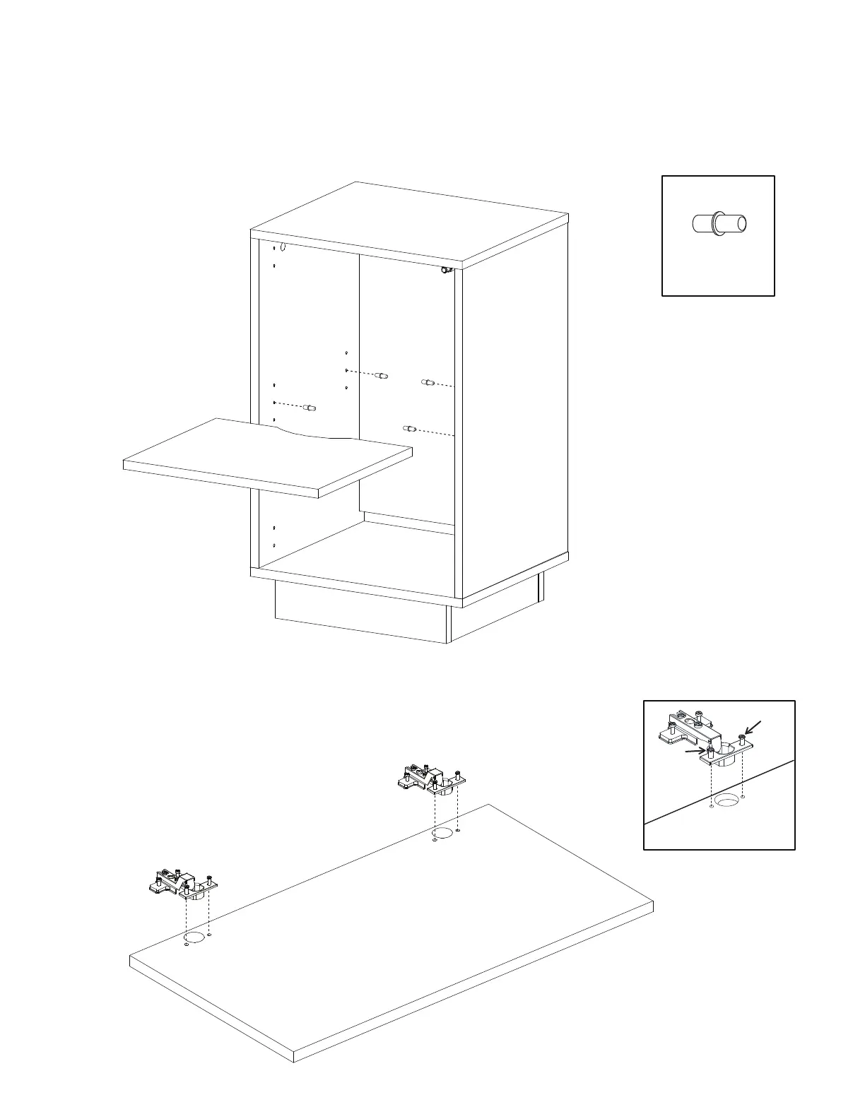 Install the 4 shelf supports # 1110 into the panels A and B. You have 3 options of height.
