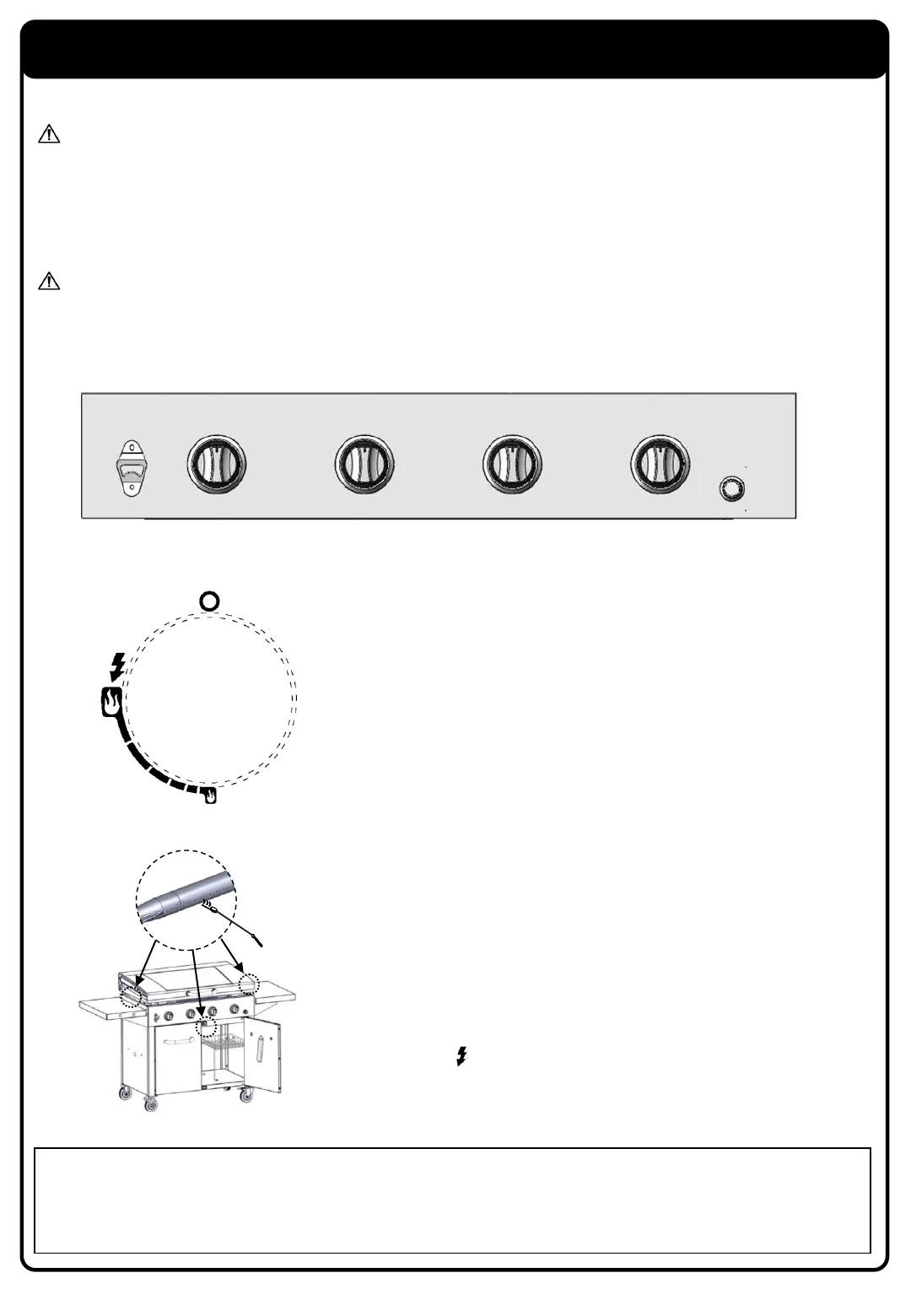ADVERTENCIA: Siempre mantenga su rostro y su cuerpo tan alejado como pueda del quemador al encenderlo.