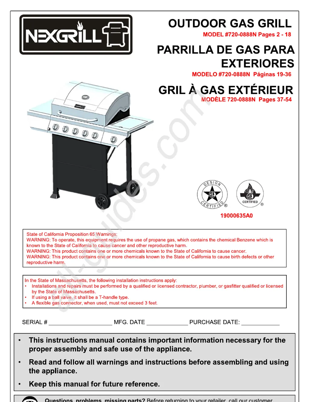 If your Nexgrill grill doesn't light immediately, ensure you see a spark when attempting to light the burner. If there's no spark, verify the battery is correctly installed and the wire is connected to the electrode assembly. Clean the wire(s) and/or electrode with rubbing alcohol and a clean swab, then wipe with a clean cloth. Check if the other burners operate; if they do, inspect the gas orifice on the malfunctioning burner for any obstructions.