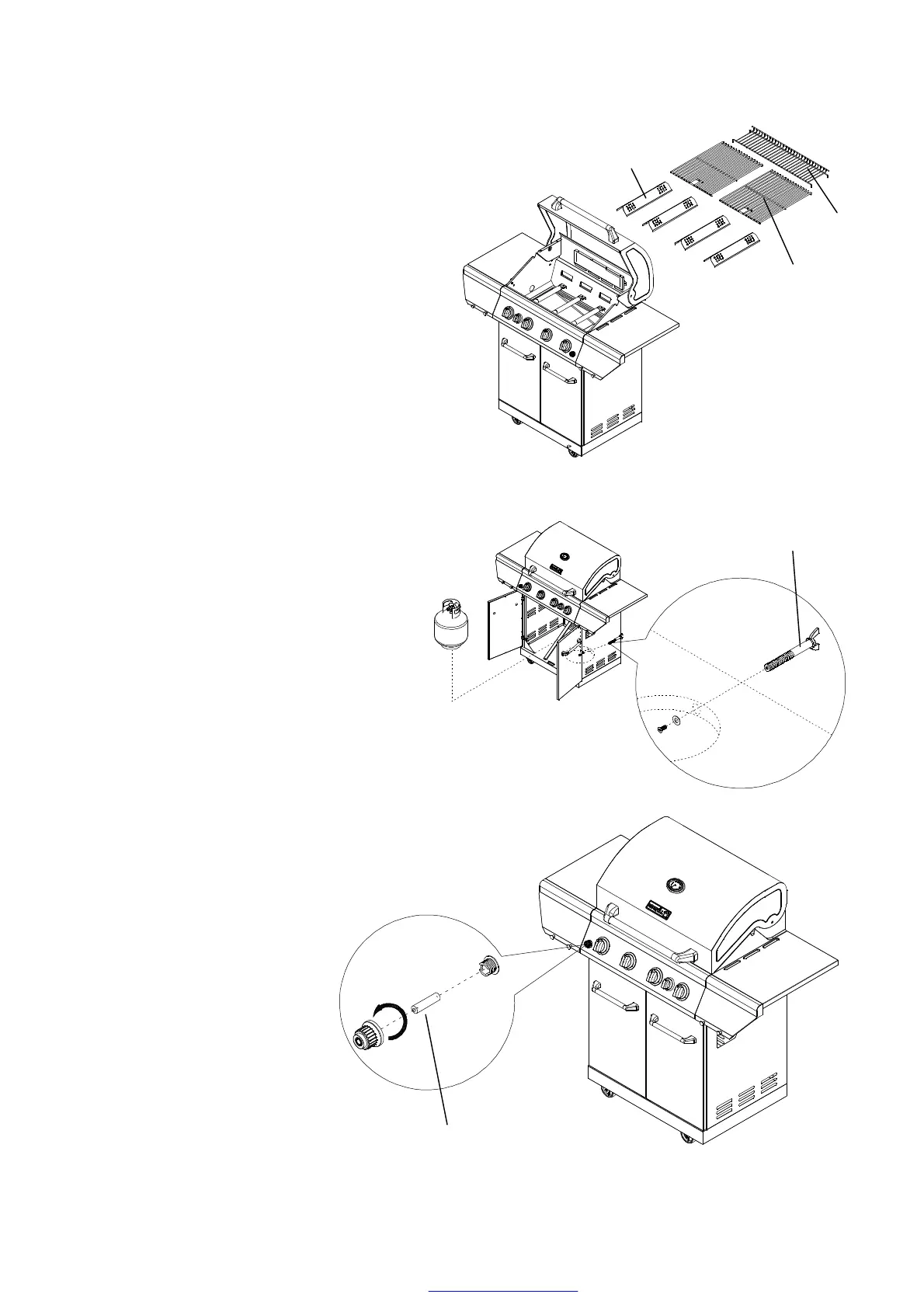 Placez les dispositifs d’arrêtde flammes (X), les grilles de
