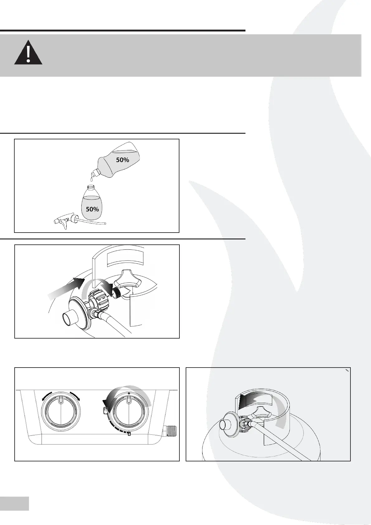 NEVER LEAKTEST WITH AN OPEN FLAME.