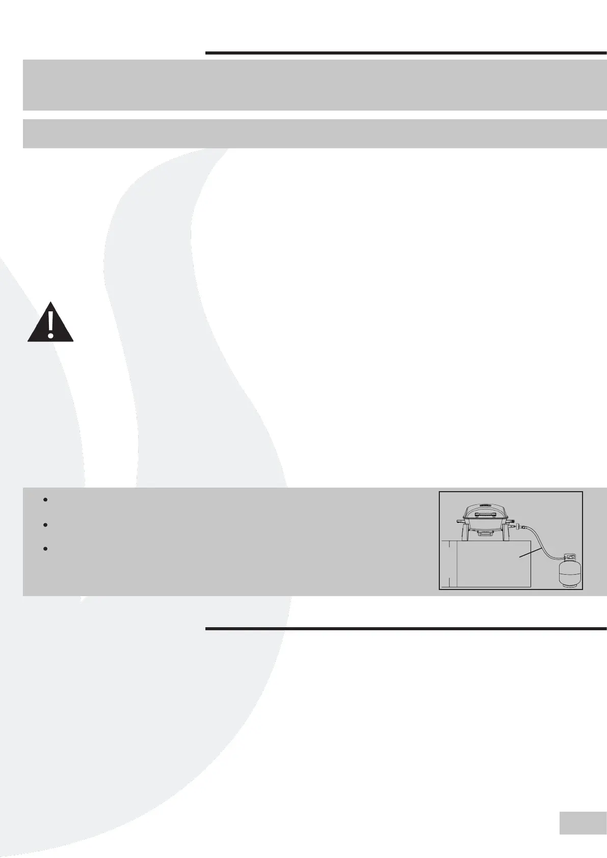 damage and/or a tripping hazard over the gas hose or LPG tank, pulling the grill