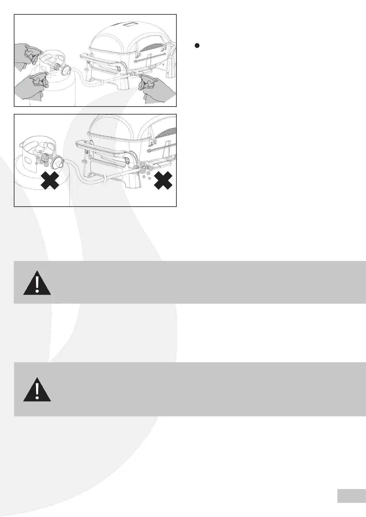 2. Der Schlauch und der Regler sind sachgemäß an den Flüssiggasbehälter angeschlossen.