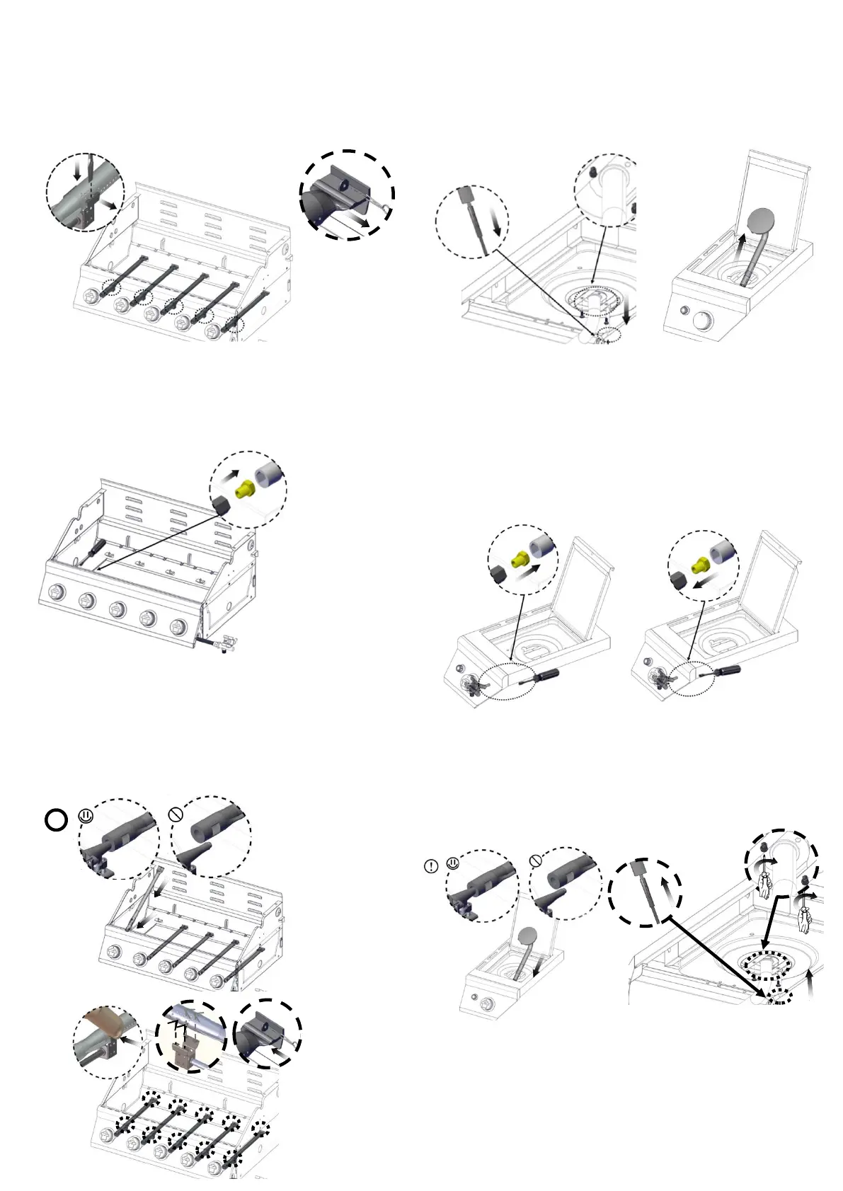 y el pasador. Quite el quemador de la parrilla al levantarlo.
