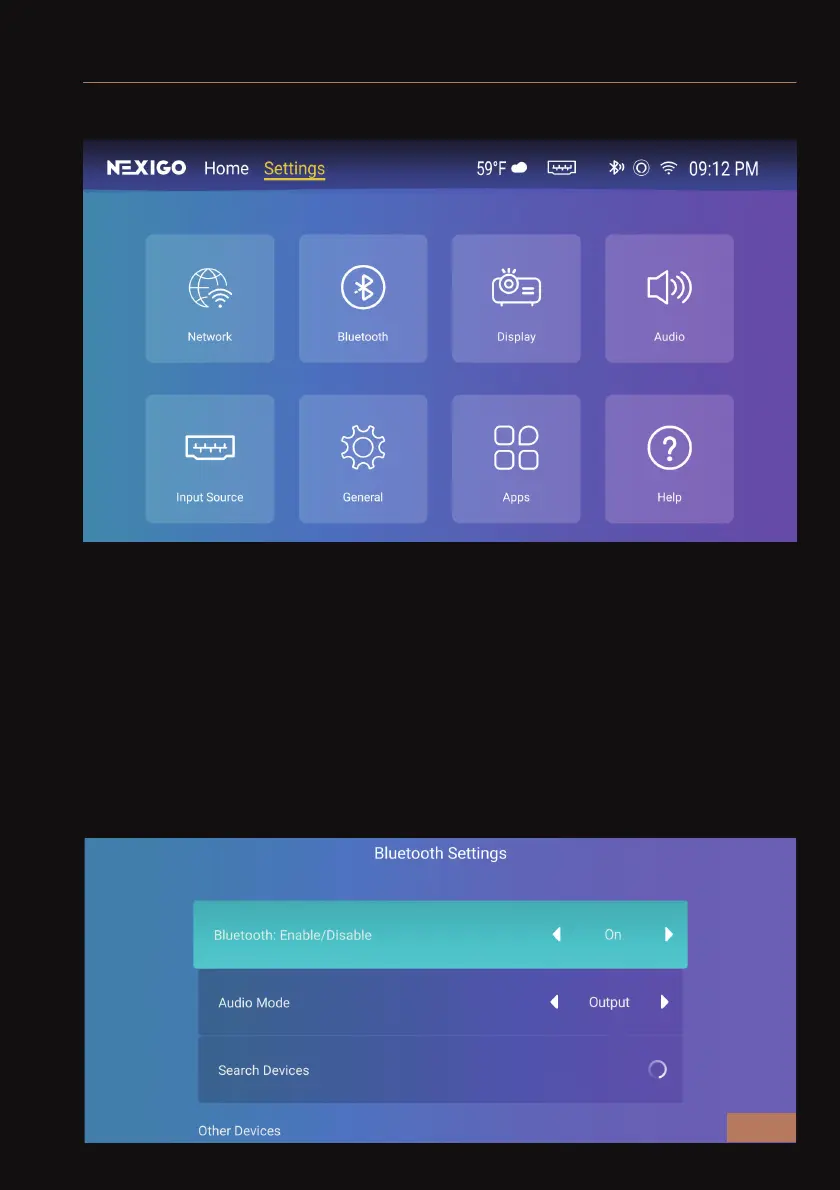 Under the Settings menu, you will find the options shown below:
