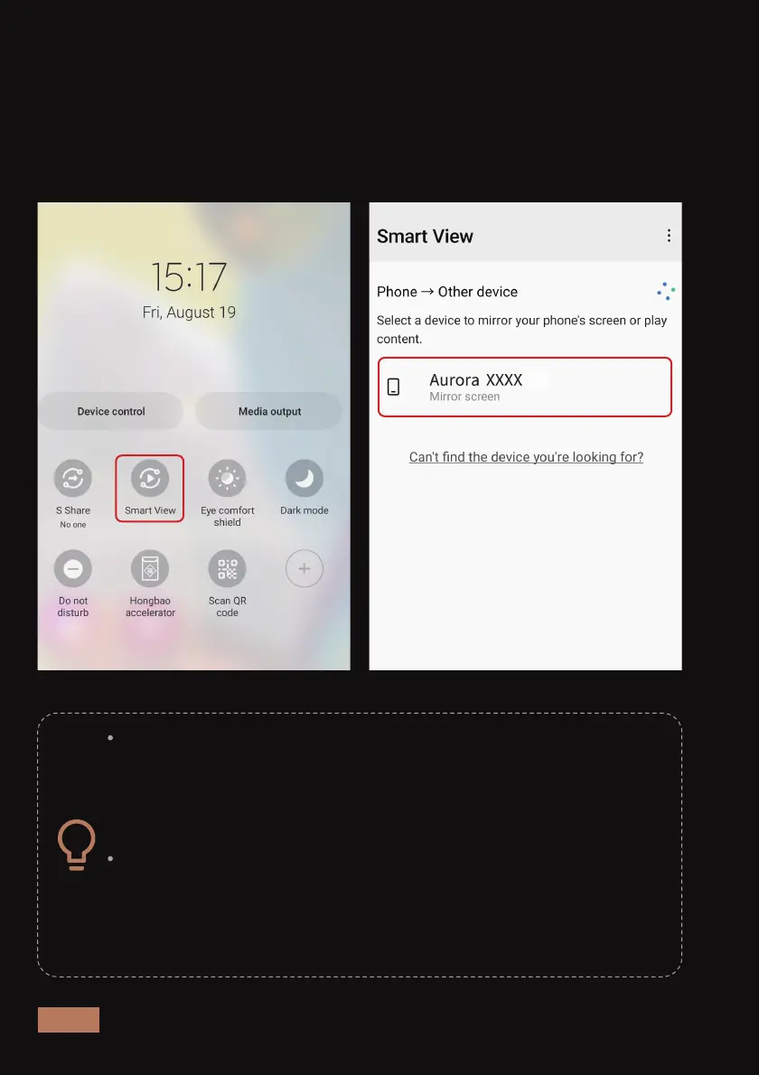 the list of available mirroring devices and select "Aurora Pro XXXX".