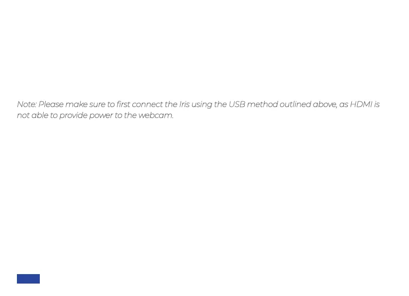 Note: Please make sure to first connect the Iris using the USB method outlined above, as HDMI is