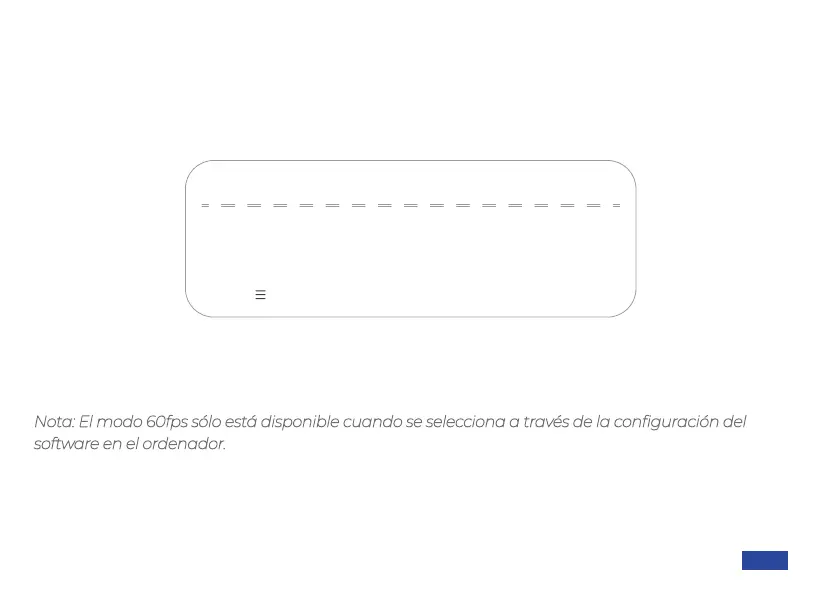 Modo 60fps (con HDMI): Ajuste entre 1080p60fps, 1080p50fps, 720p60fps y 720p50fps.