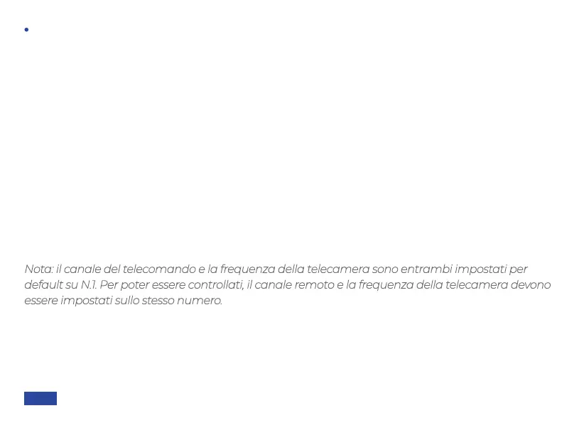 Nota: il canale del telecomando e la frequenza della telecamera sono entrambi impostati per
