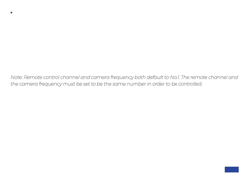 Note: Remote control channel and camera frequency both default to No.1. The remote channel and
