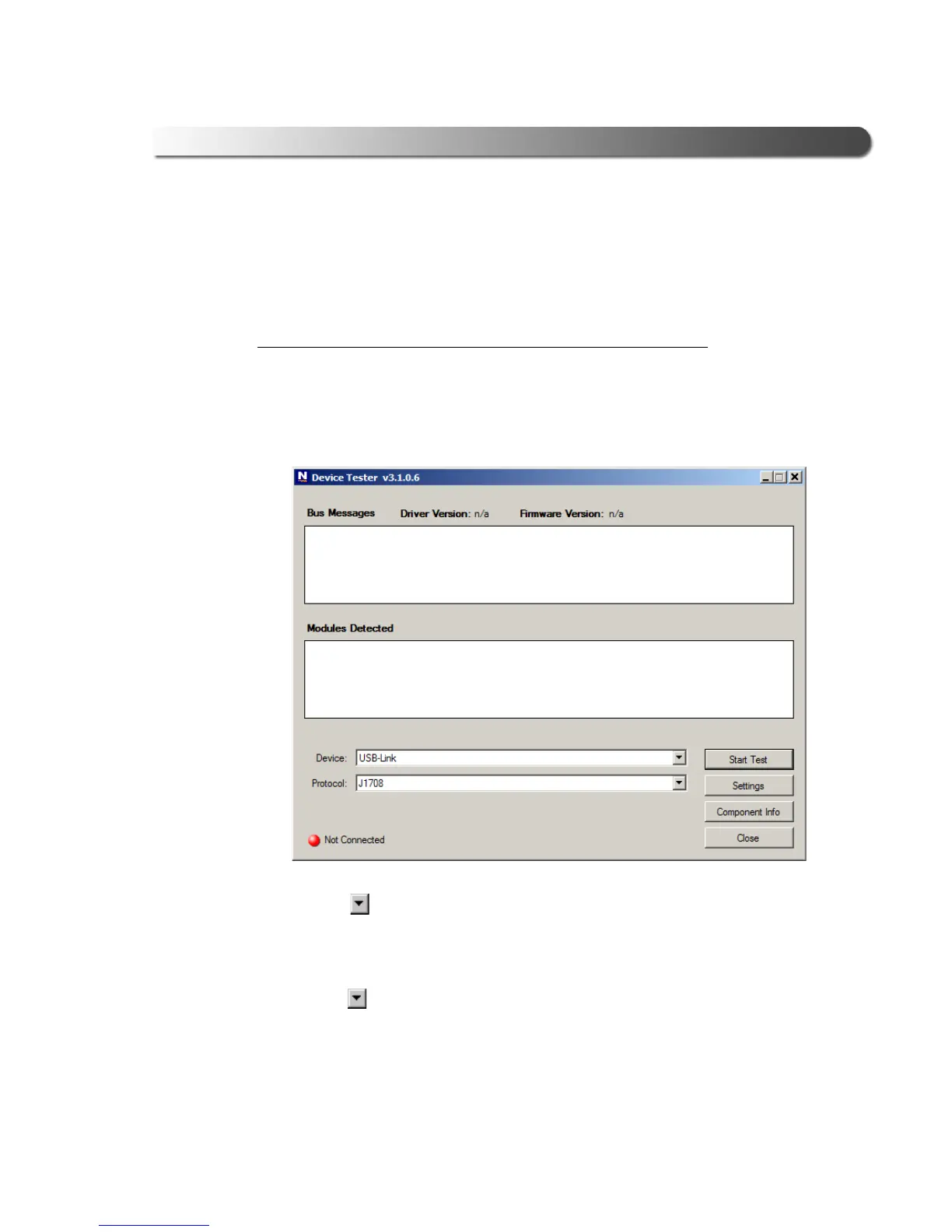 Figure 3.14 Device Tester Screen, Showing a Status of Not Connected