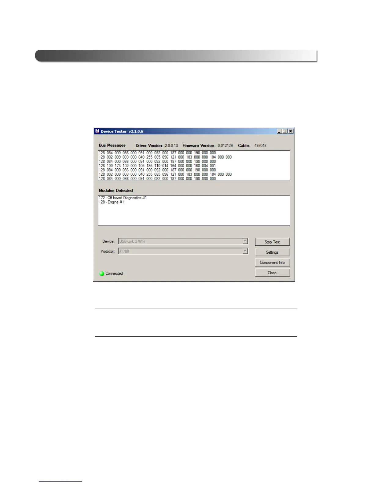 Figure 3.15 Device Tester Screen, Showing a Status of Connected
