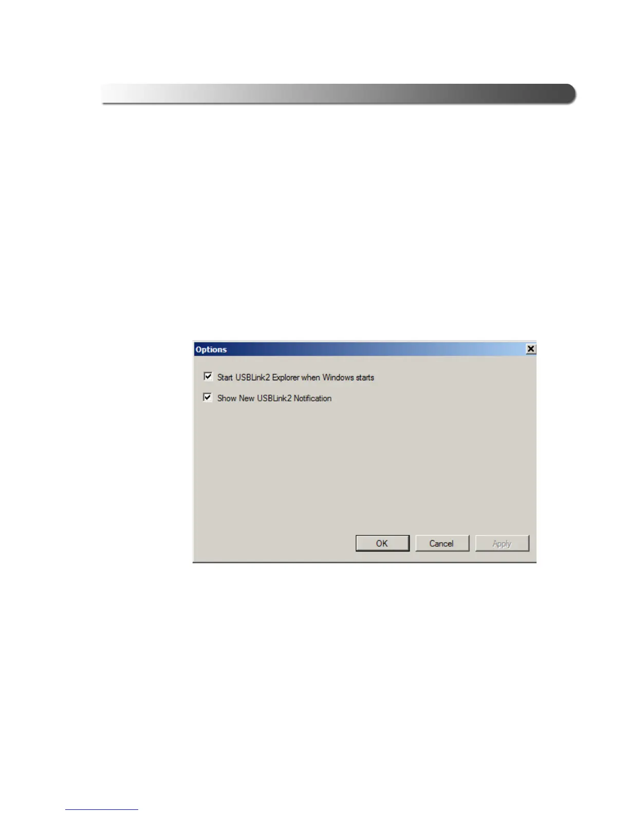 • Start USBLink2 Explorer when Windows starts (pg. 37)