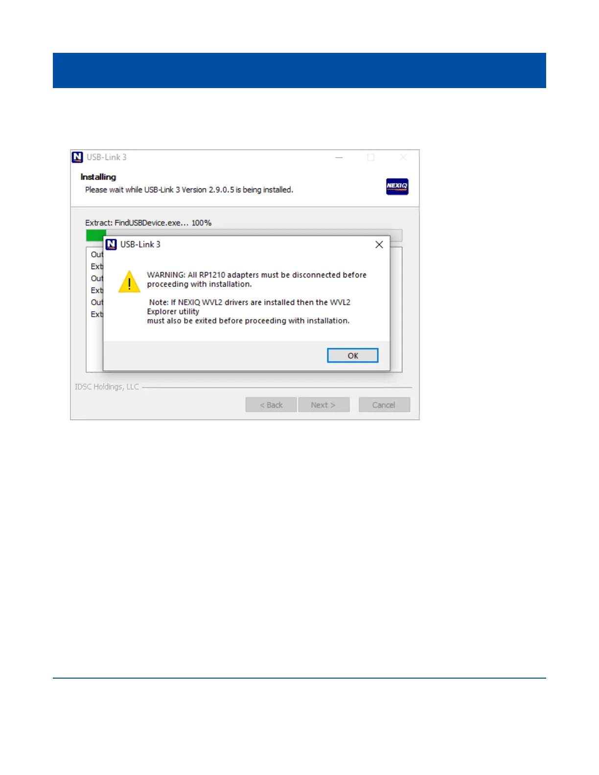 8 Carefully read the warning message. Disconnect all RP1210 adapters connected to your laptop