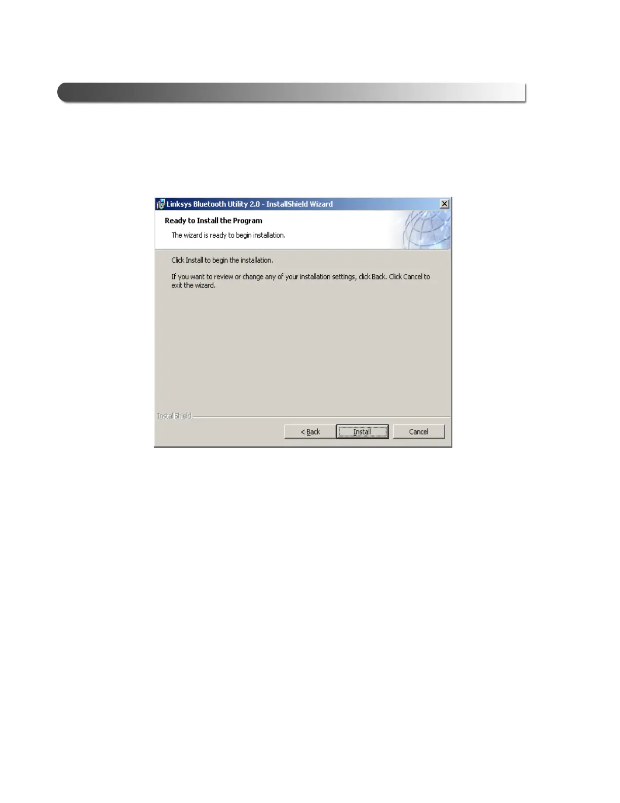 8 Wait while the InstallShield Wizard installs the Linksys Bluetooth software.