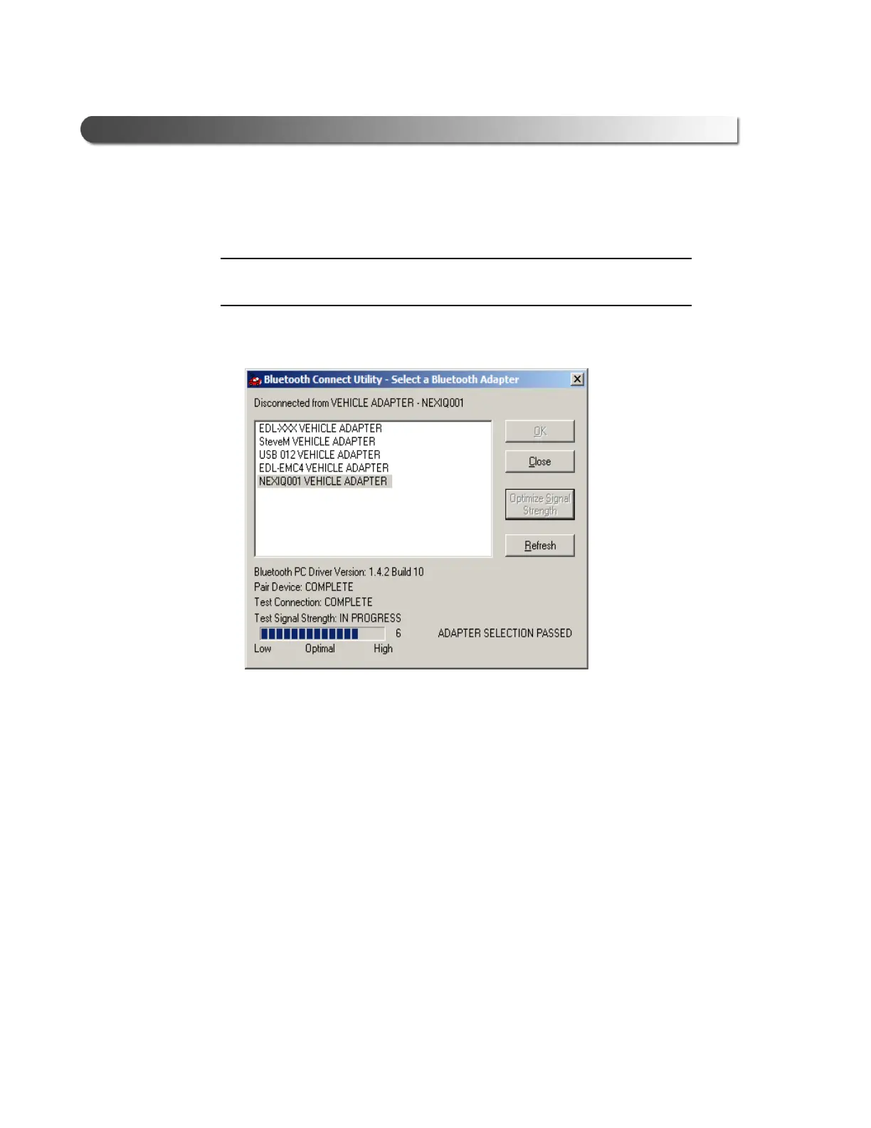 i The Optimize Signal Strength button is only available with Widcomm