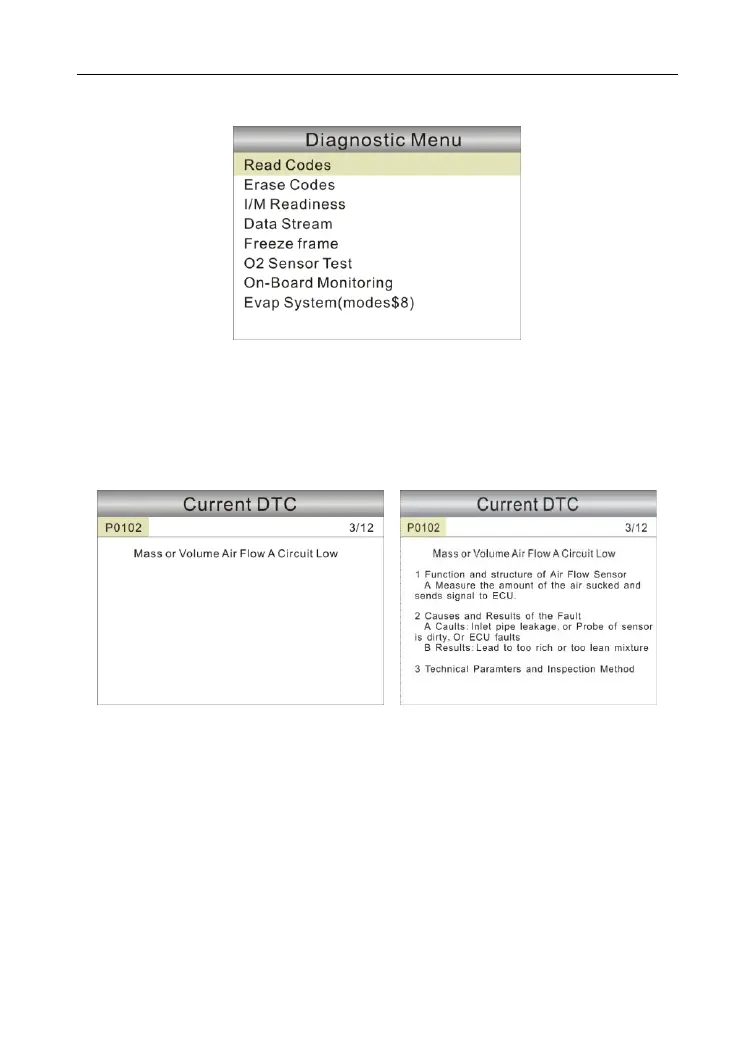 In Figure 5-10, 3/12 indicates there are total 12 codes and P0102 is the third