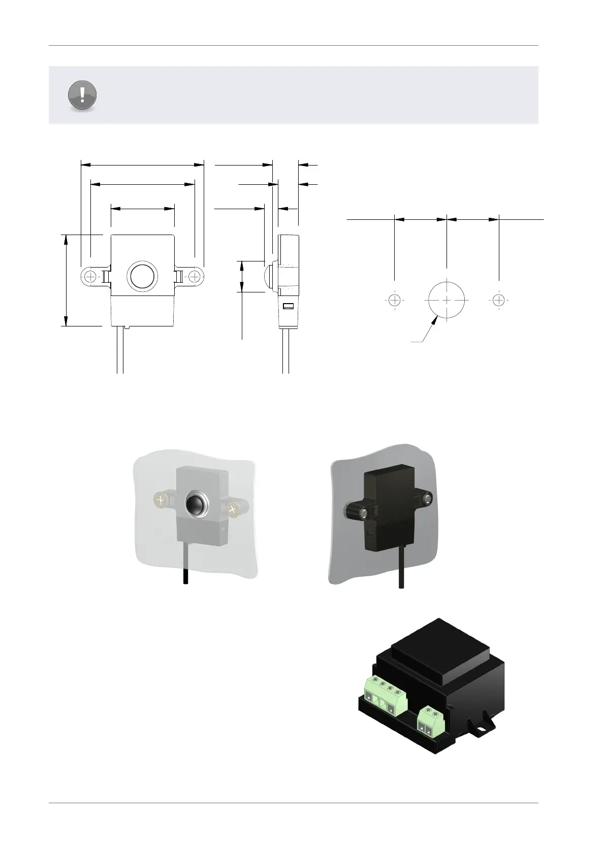Overall dimensions of the motion sensor Dimensions of the mounting holes