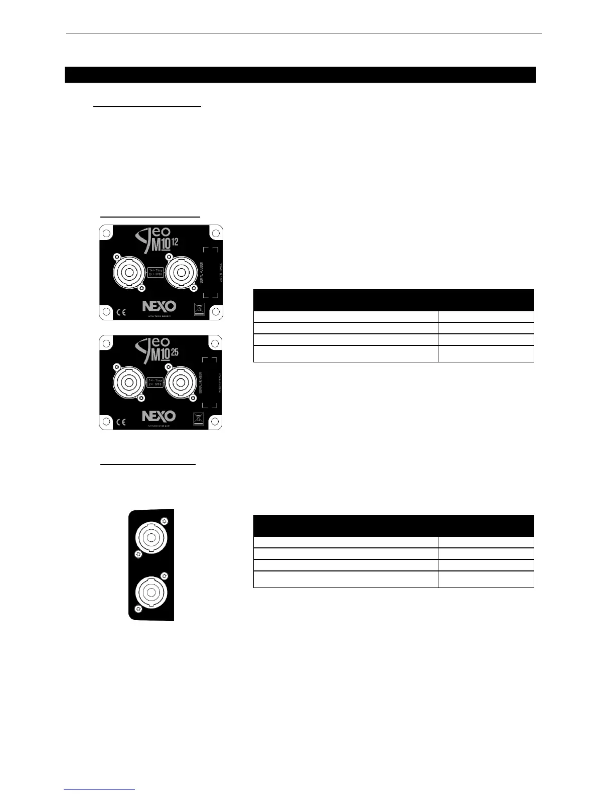 Either connector can be used to connect amplifier or to link to an additional GEO M10 cabinet or to link