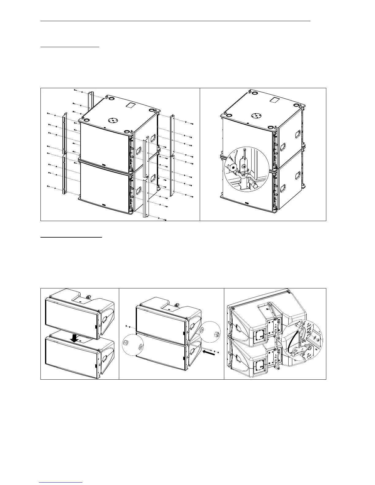 - Connect both cabinets by inserting the axis through front holes and secure axis with brake nuts.