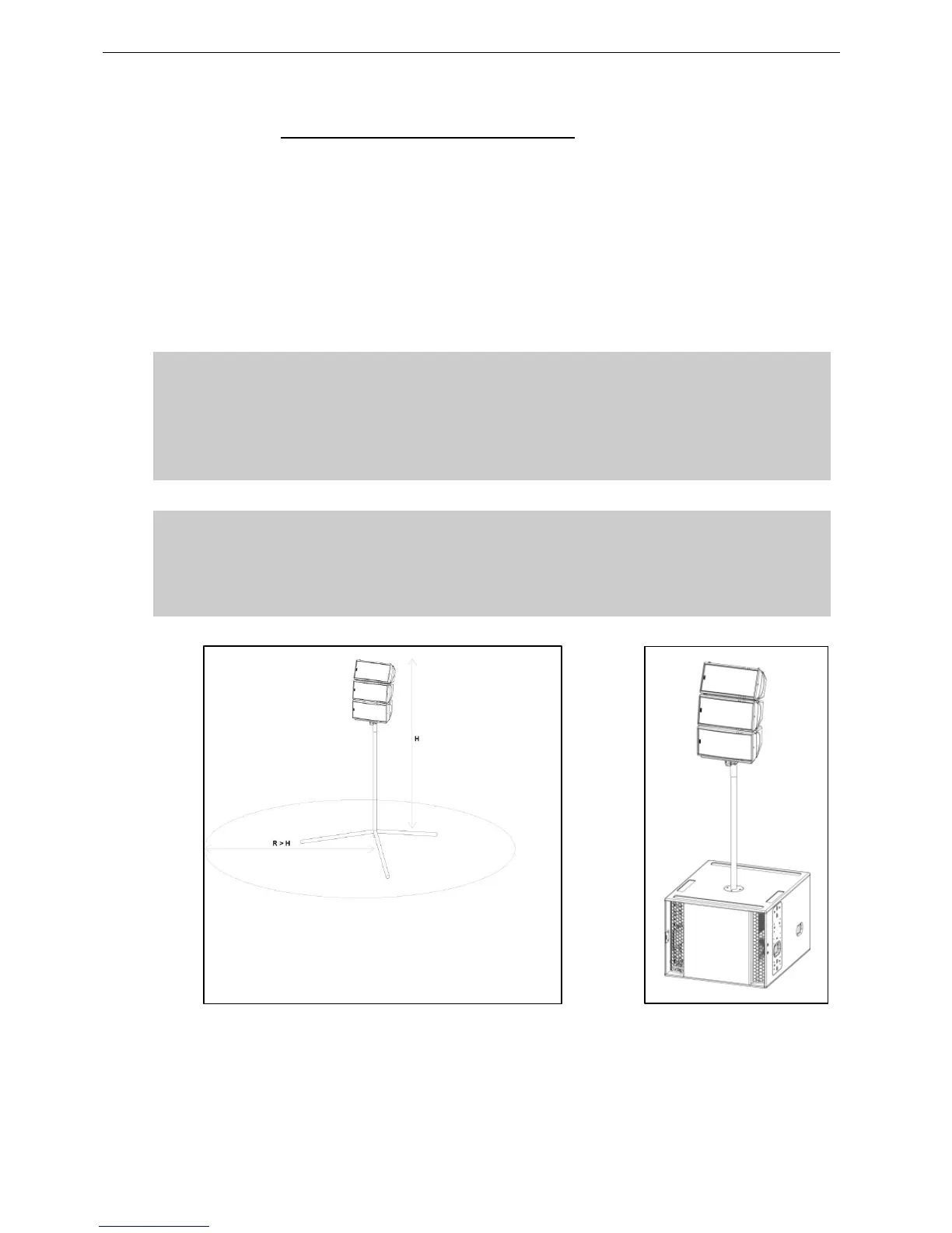 - Speaker stand must be rated for assembly weight (30kg rated load min);