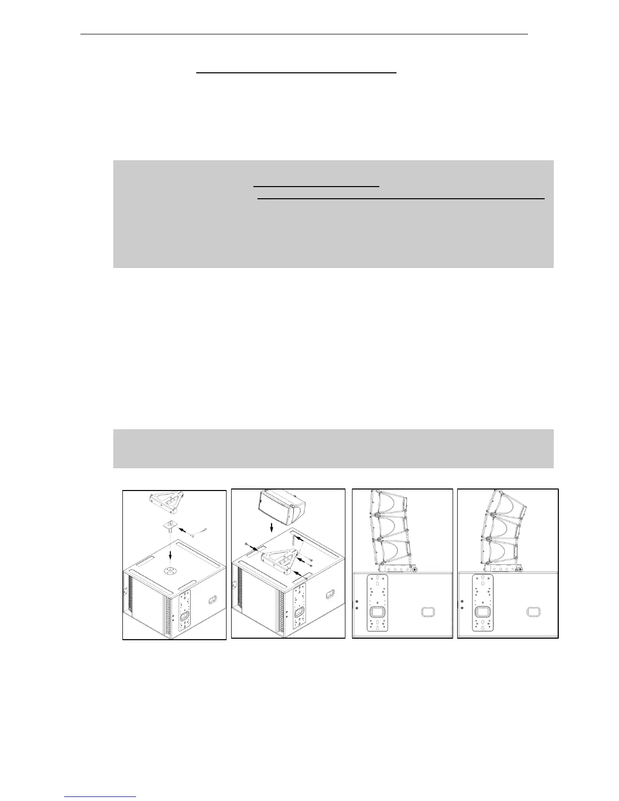 - Connect subsequent cabinets at required inter-angle values with 4 x VXT-BL515 quick release pins